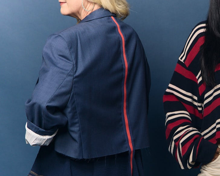 Classic tailoring, reimagined with a Partwo twist. The Von Blazer takes the sharp lines of a menswear staple and softens them with a cropped, boxy fit that feels both polished and effortless. Cut to layer with ease, it’s finished with our signature striped grosgrain ribbon detail for an unexpected pop at the back. Equal parts versatile and bold, it’s the blazer you’ll reach for when you want to stand out without even trying.